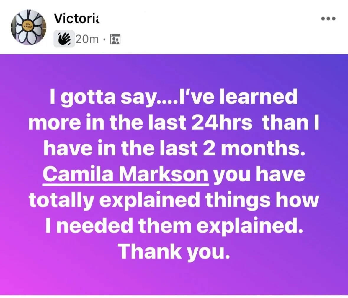 "I left my corporate job only 2 months after learning these skills. This would not have been possible if it wasn’t for Camila paving the way. I’m forever grateful for you. Thank you for showing people that it’s possible to change their lives!"